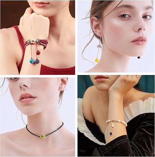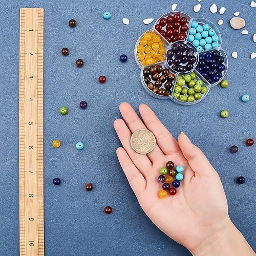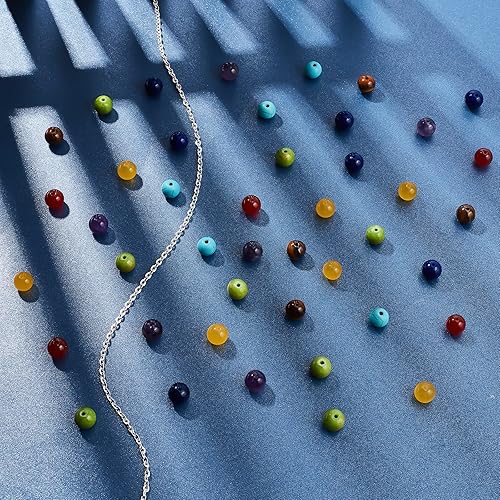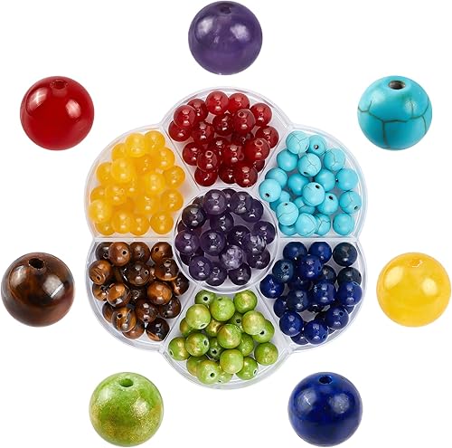SUNNYCLUE 1 boîte 140 pièces 7 Perles de Chakra Pierres Précieuses Naturelles Pierre Naturelle Colorée Cristal Rond Énergie de Perle en Vrac Agate de Jade pour la Fabrication de Bijoux