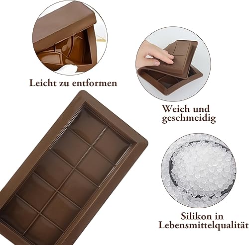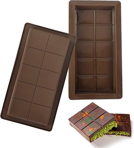Lot de 2 Moule à chocolat en silicone avec 10 cavités, moules à tablette de chocolat profonds Moules en silicone Barre de chocolat Moules à chocolat profonds Moules à chocolat super profonds
