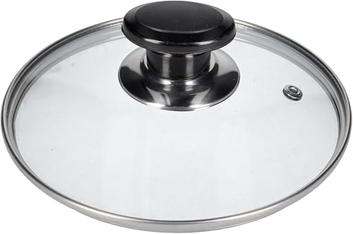 Europart Couvercle en verre universel - Diamètre : 160 mm - Avec poignée à bouton et bord de protection en acier inoxydable - Pour casseroles, poêles et poêles de 160 mm de diamètre