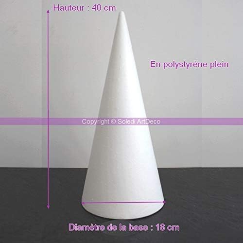 Cone en polystyrène Plein, Hauteur 40 cm, Présentoir à Macarons, Diamètre de Base 18 cm, Styro Blanc