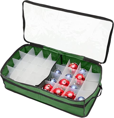 Betos Boîte de rangement pour boules de Noël, boîte de rangement avec fenêtre transparente pour décoration de Noël, 64 cloisons intérieures, Noir