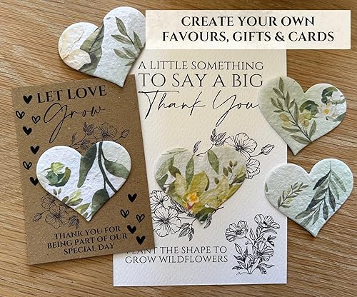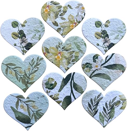 Lot de 20 cœurs à planter - En papier botanique vert - Fleurs sauvages - Respectueux de l'environnement - Pour mariage, fabrication de cartes, décorations artisanales, cadeaux funéraires, cartes de