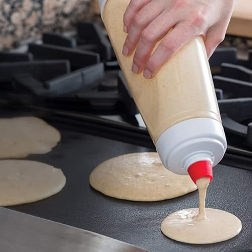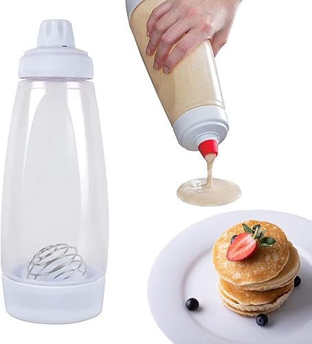 FARYODI Batter Distributeur de pâte 1 l - Distributeur de pâte à crêpes avec couvercle et graduation - Mélangeur manuel pour crêpes, muffins, poffertjes, crêpes et gaufres
