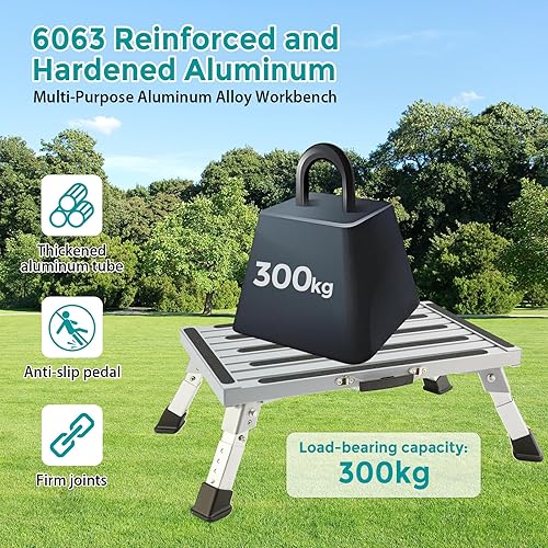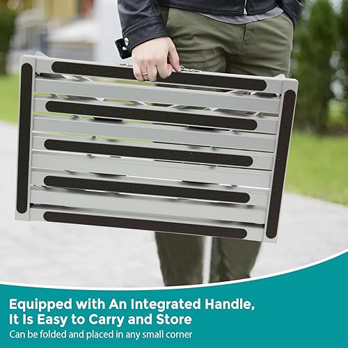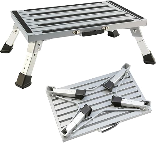 Marchepied pliable, hauteur réglable en aluminium, escabeau portable avec poignée et tapis antidérapant pour caravane, camping-car, SUV, camping, bus et maison avec film lumineux