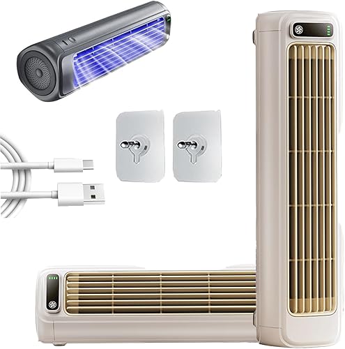 Sherum Rafraichisseur D'Air Portable, 3 Vitesses, Avec Affichage Led, Rechargeable, Convient Pour Chambre/Bureau/Bureau (Beige)