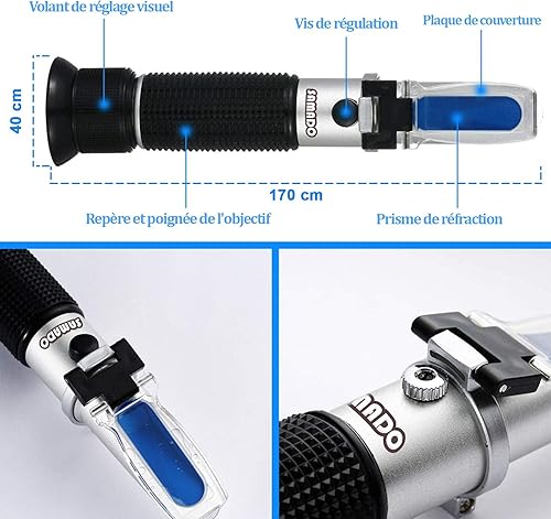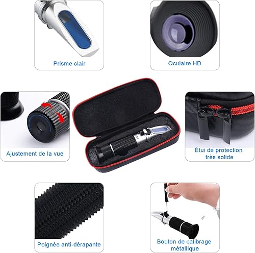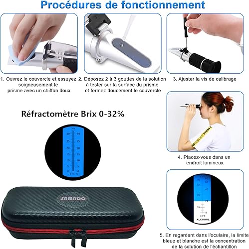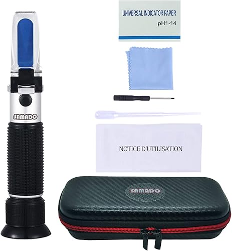 Réfractomètre Brix 0-32% - Mesurer facilement le taux de sucre dans les jus, fruits, légumes, soupes, boissons lactiques et gazeuses ETC Avec ses accessoires + Papier indicateur de PH 1-14 inclus