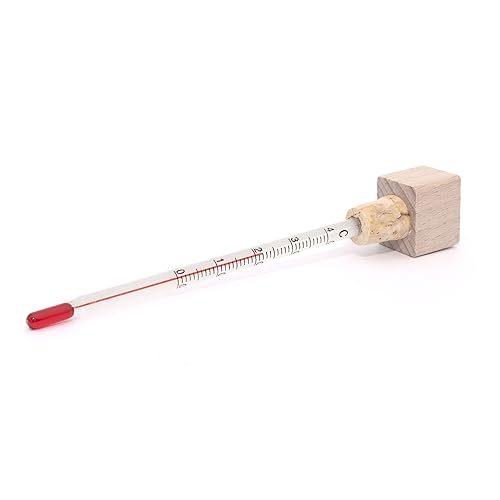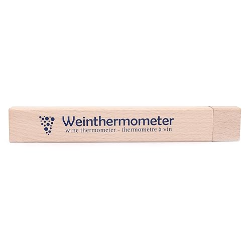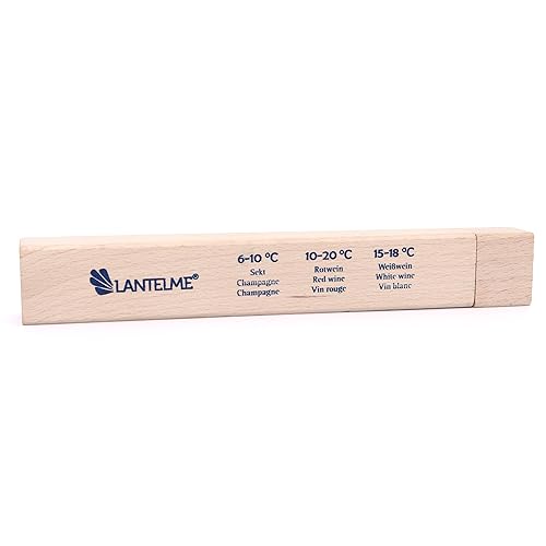 Lantelme Thermomètre à vin en verre dans une boîte en bois de 17 cm - Affichage analogique de la température de 0 à 40 °C - Mesure de la température du vin mousseux champagne - Pour bouteille de vin