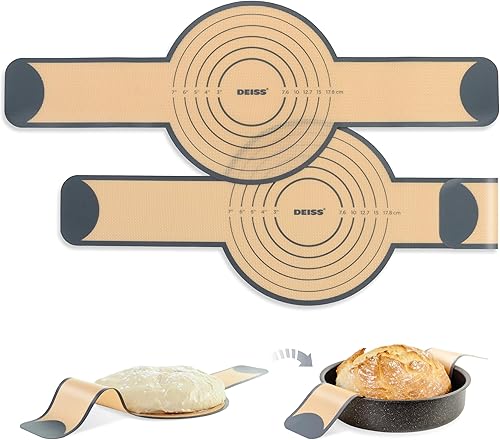 Deiss Lot de 2 Tapis en Silicone pour Cuisson du Pain en Cocotte – Résistant à la Chaleur, Antiadhésif & Réutilisable, Tapis de Cuisson en Silicone pour Pains au Levain, Durable & Facile à Nettoyer