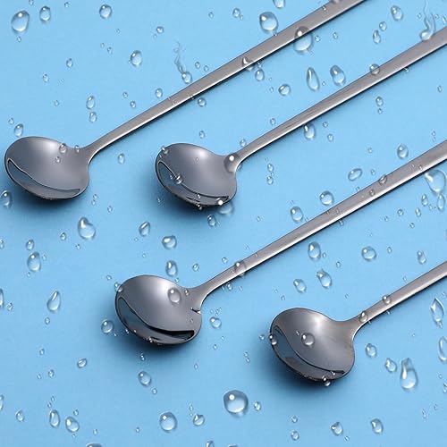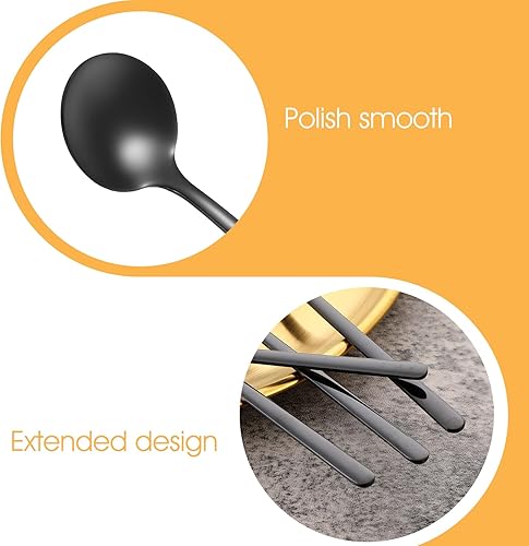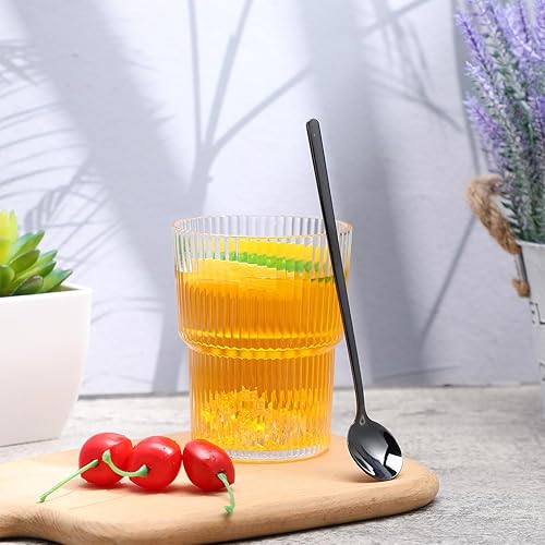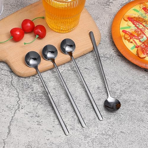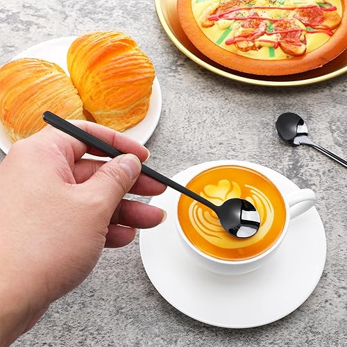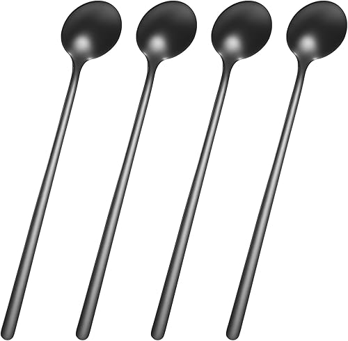 Lot de 4 cuillères à café en acier inoxydable noir mat avec long manche de 17 cm pour bar, sucre, gâteau, crème glacée, soupe, antipasto, cappuccino