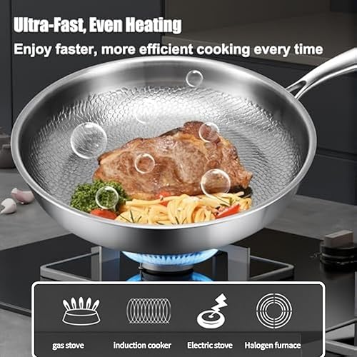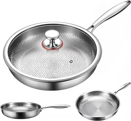 Titanium Frying Pan, Titanium Hammered Pan Pro with Lid, 2025 Ultra-Durable Scratch-Resistant Non Stick Ti Nutri Pans for Cooking, Induction Compatible (L: 11.02in)