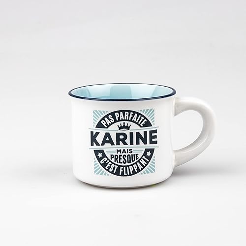 Kontiki- Tasse expresso et sa sous-tasse en faïence personnalisée: 'Karine...'