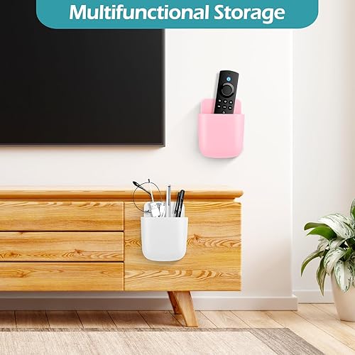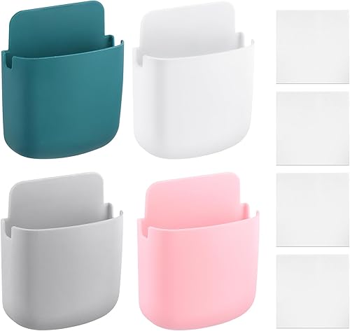 UKOFEW 4 Pièces Support de Telecommande Mural,Télécommande Boîte De Rangement,Auto-adhésif Support De Télécommande,pour Télécommande, Crayon, Téléphone Portable, Brosse À Dents