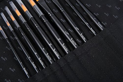 ETCHR Set de pinceaux pour Peinture Acrylique, Huile, Aquarelle, Gouache, 10 Tailles différentes pour Artistes, Adultes,Amateurs et Enfants, Sac de Transport Noir Inclus