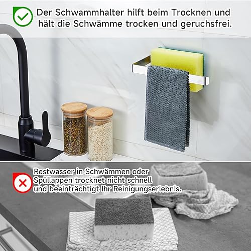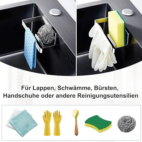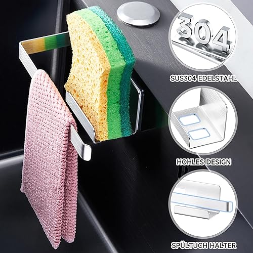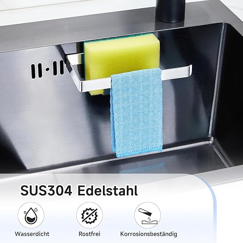 Porte éponge évier, porte torchon autocollant, porte éponge à vaisselle cuisine 2 en 1, porte torchon en acier inoxydable pour torchon, éponges, brosse et bouchon d'évier