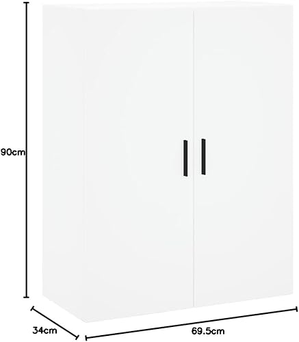 Annlera Armoire murale en bois - Armoire de cuisine - Armoire d'appoint - Armoire de rangement - Armoire flottante - Design élégant - Organiseur polyvalent - Blanc - 69,5 x 34 x 90 cm
