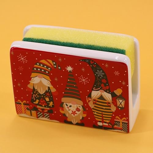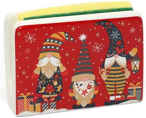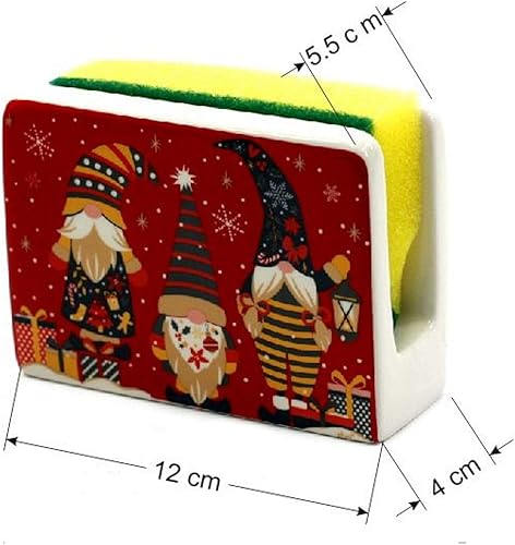 Tabac du Bassigny Porte Éponge en céramique décore Lutin de Noël Gnormy Rouge - 12 x 9 cm