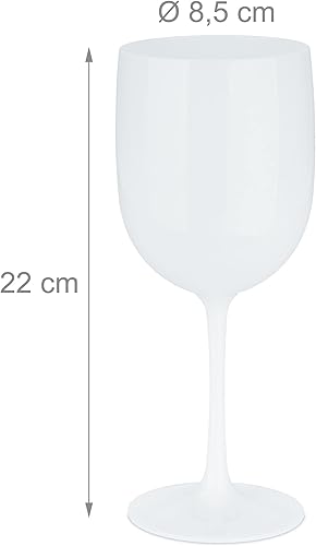 Relaxdays Verre à vin en Plastique, Lot de 6, Plastique Robuste, sans BPA, 400 ML, réutilisable, Camping, Blanc