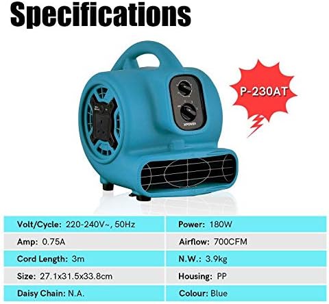 XPower P-230AT Multi Air Mover Utility Ventilador Secador con temporizador para restauración y plomería 3 velocidades con cuentas de gel eliminadores de olores