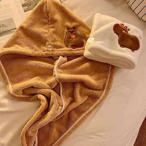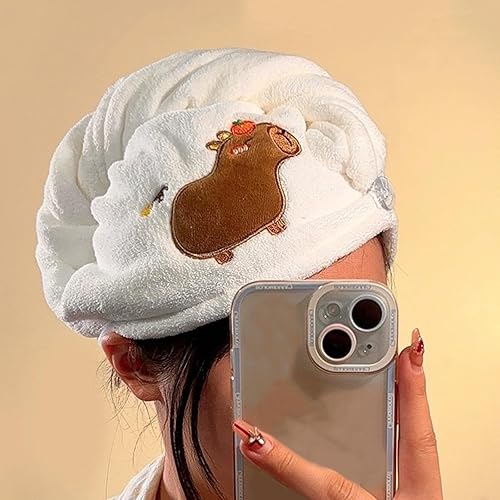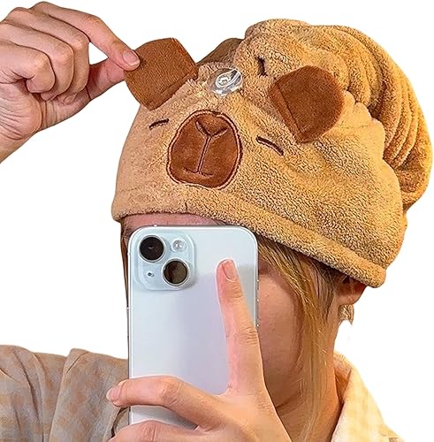 Yooghuge Accessoires de bain Capybaras Serviette à cheveux à séchage rapide en microfibre avec bouton pour cheveux mouillés