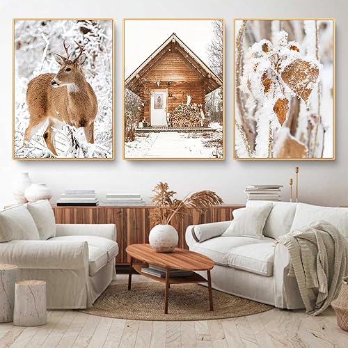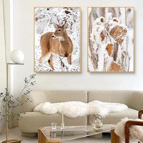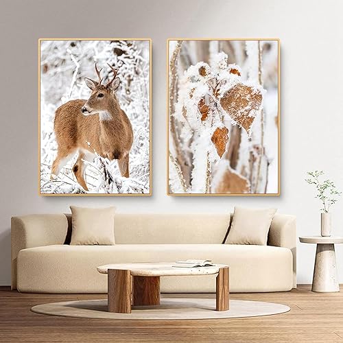 HTWLMM Cerf Hiver Paysage Enneigé Nature Paysage Tableaux sans Cadre Affiche Toile Peintures Murale Art Salon Chambre Décor À La Maison (3X40X60CM,sans Cadre)