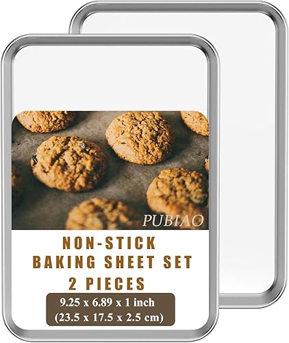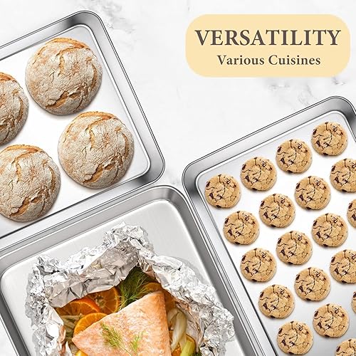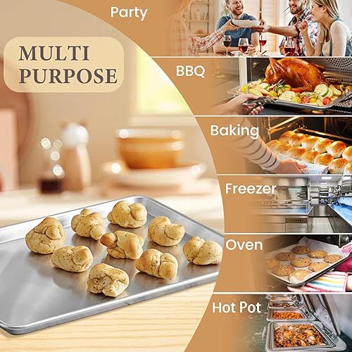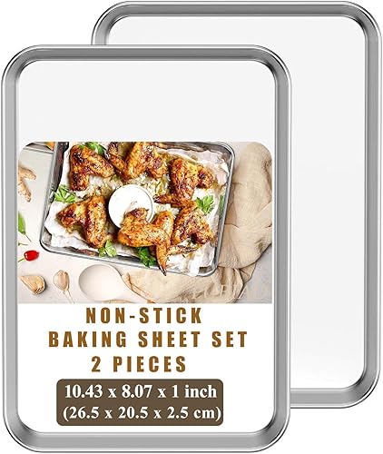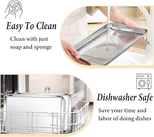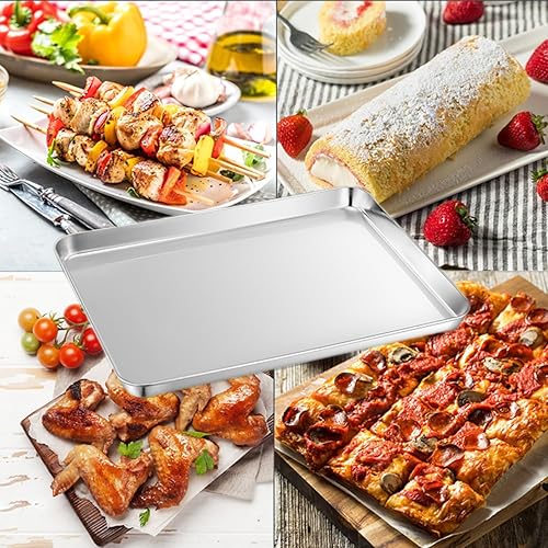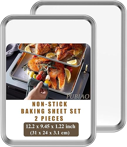 Set de 2 Plaques à Pâtisserie, Set de Plaques à four en Acier Inoxydable, Set de Cuisson avec Rebord - Poêle à Servir, Non Toxique, Facile à Nettoyer et Résistant au Lave-Vaisselle (31x24x3.1CM)