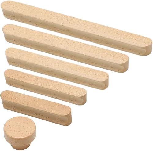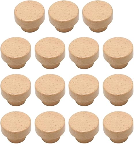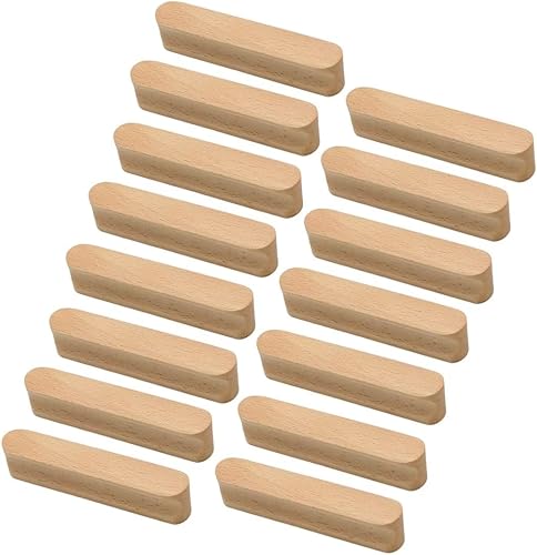 Lot de 15 poignées de tiroir en bois de hêtre massif pour armoire, commode, cuisine, tiroir de cuisine