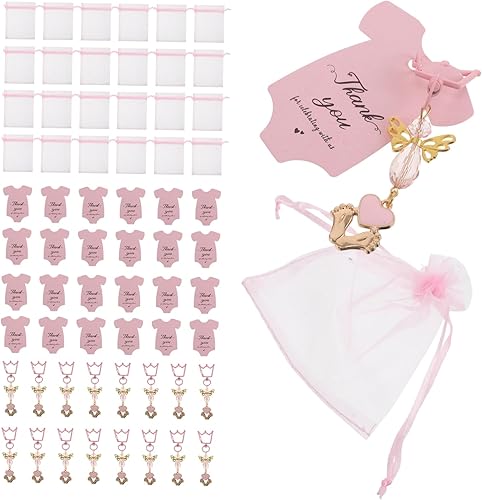 ANDRESLAD Lot De 20 Porte-clés Couronne Ange Pour Baby Shower Avec Étiquette De Remerciement, Idéal Pour Baptême, Enterrement De Vie De Jeune Fille Ou Pour Offrir Aux Invités. Joli