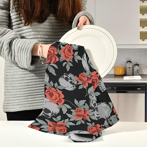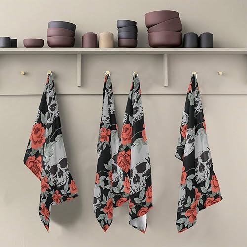 Xigua Lot de torchons de cuisine en forme de tête de mort - 1 serviette absorbante et douce - Réutilisable - Séchage rapide - 45,7 x 71,1 cm