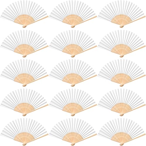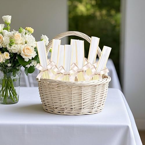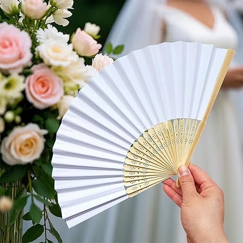 Tomkity Lot 60 Eventail Mariage Personalisable Blanc Pliante de Papier Cadeau pour Invités Mariage Fête Décoration Déco DIY