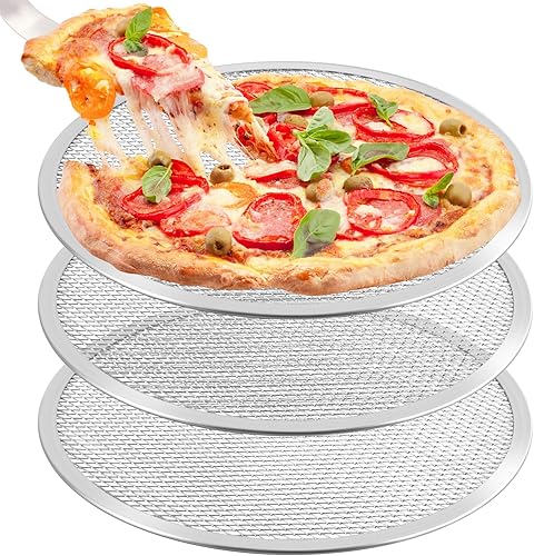 Suimlmta Lot de 3 plaques à pizza rondes antiadhésives en aluminium pour four, maison, restaurant - 33 cm