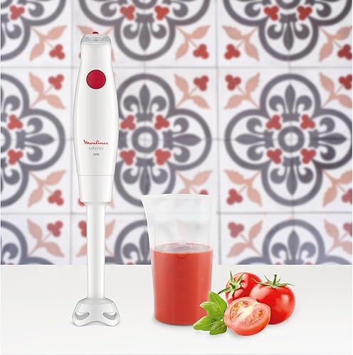 Moulinex Mixeur plongeant, 600 W, 2 vitesses, Poignée ergonomique, Pied antiéclaboussures inox, Compatible lave-vaisselle, 4 lames technologie Powelix, Daily Chef Blanc DD551110