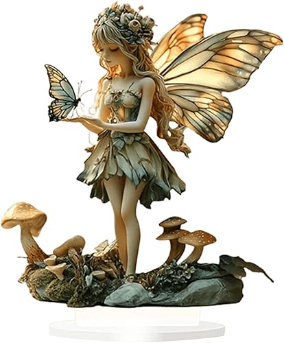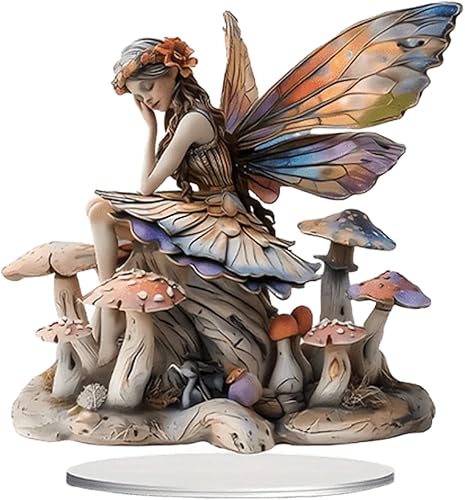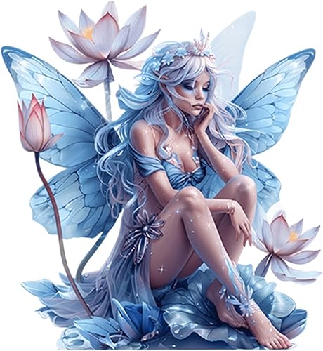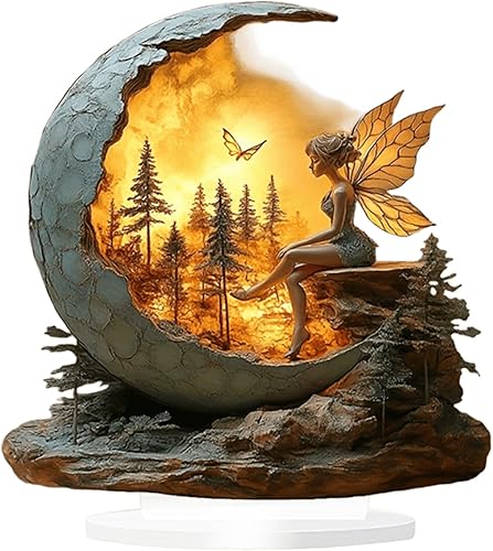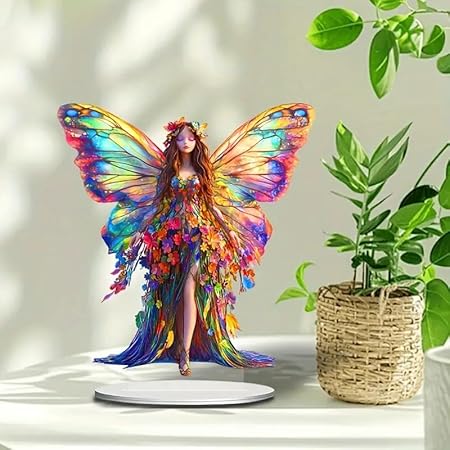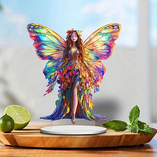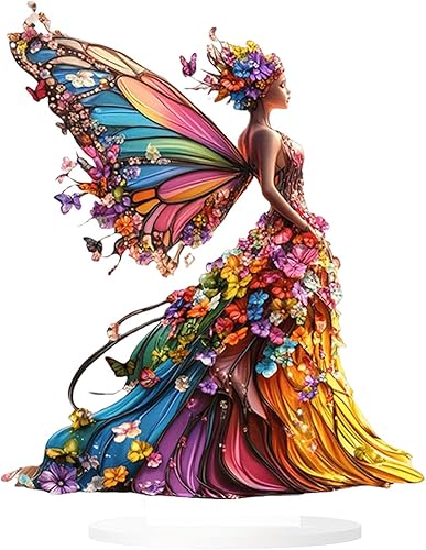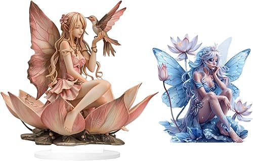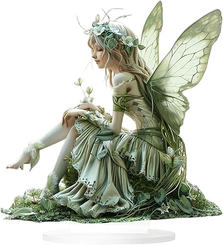 HWOLPEMS Décoration de bureau en forme de fée de lotus bleue en acrylique - Statue de fée plate 2D - Décoration d'intérieur - Décoration de bureau pour la maison, la chambre, le bureau (E)