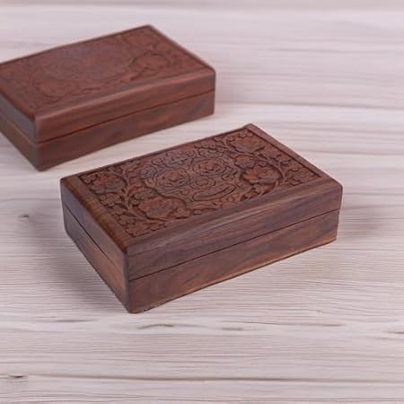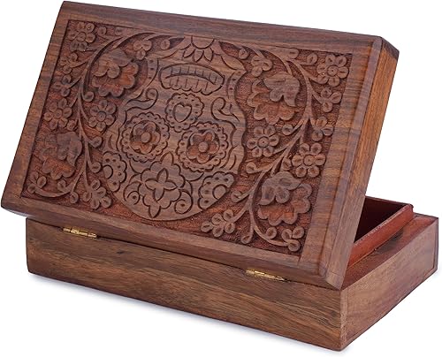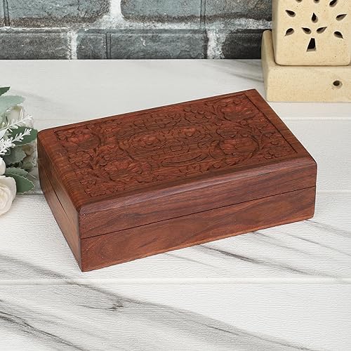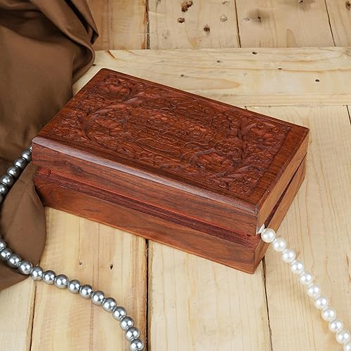 Ajuny Coffret à Bijoux en Bois Sculpté à la Main – Boîte de Rangement Décorative Fleur et Feuille – Cadeau pour Femmes Hommes, Montres, Souvenirs – Marron, 8 x 5 pouces