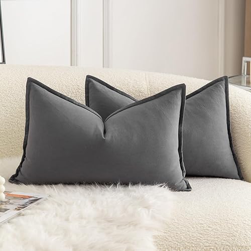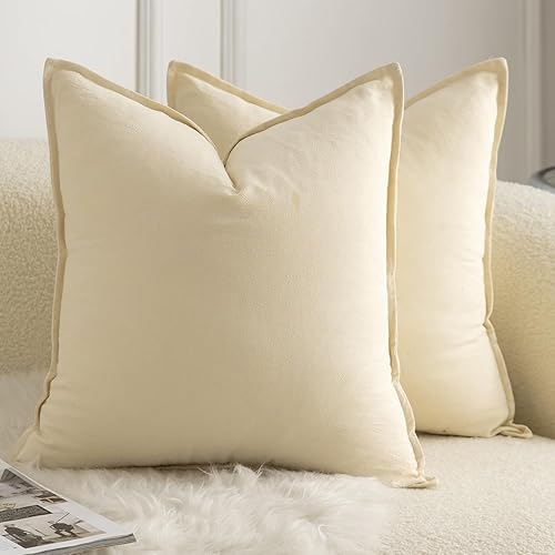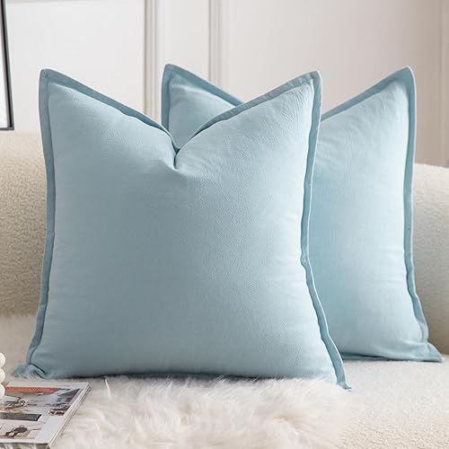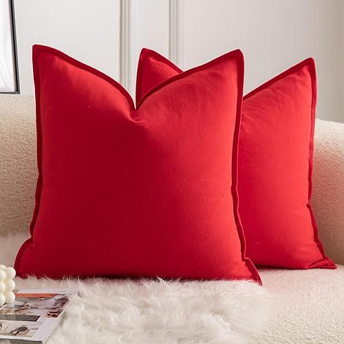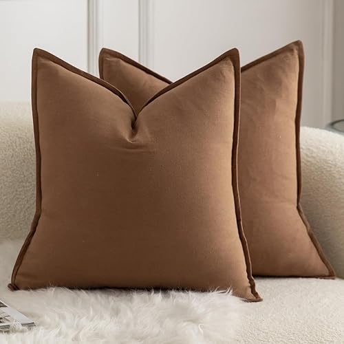 Mandioo Lot de 2 Housses de Coussins Pur Coton Couleur Pure Moderne Doux Confortable Taie d'oreiller Decoration Maison Salon Chambre pour Canapé 60x60 cm Vert Olive