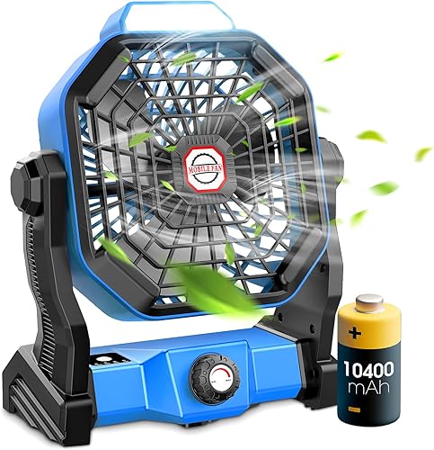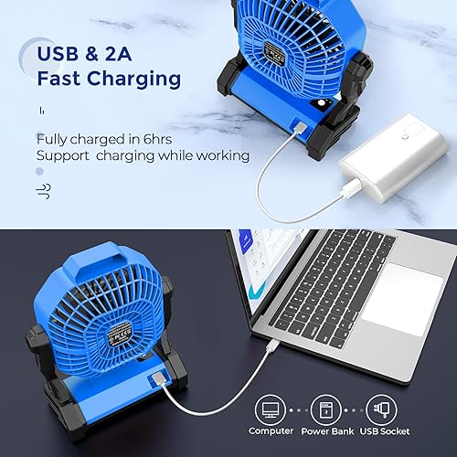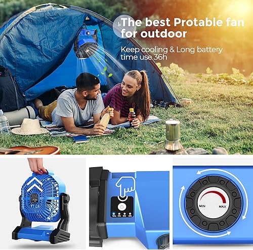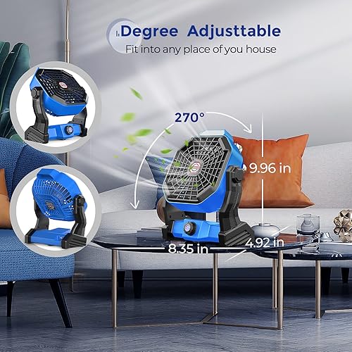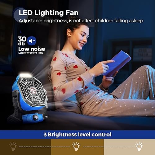 dovecina Ventilateur Silencieux LED 10400mAh Rechargeable,Ventilateur Portable Bureau 270°Rotation Avec Lumière LED,Vitesse Illimitée avec Crochet,pour Camping Bureau Chambre Voyage (Blue)