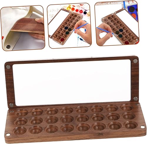 VILLCASE 3pièces Boîte à Peinture Aquarelle Bois De Noyer Miniature Palette De Mélange De Pigments Couleurs Pratique Pour Voyage Et Cours Art Idéale Pour Artistes Et Étudiants