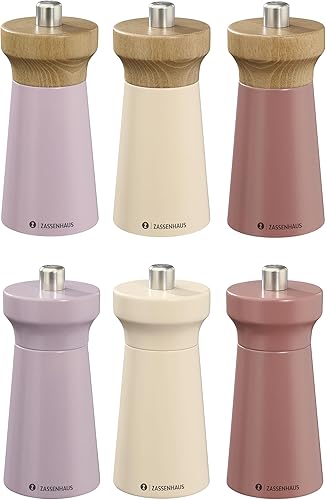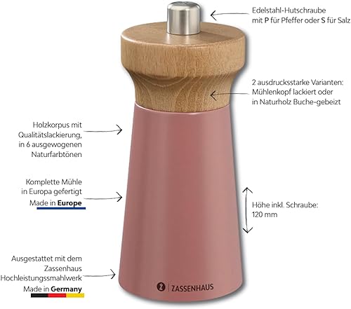 Zassenhaus WESTERLAND Moulin à sel corail - Bois de hêtre laqué - Avec broyeur en céramique haute performance réglable en continu - Moulin à épices pour sel - 12 cm, diamètre 5,4 cm