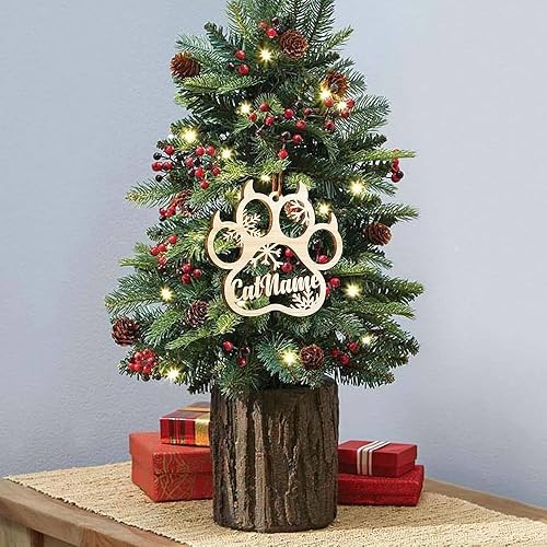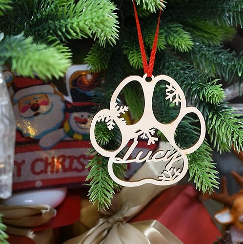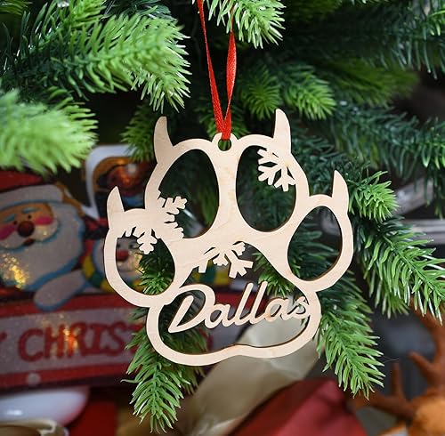 yky Décorations de sapin de Noël personnalisables, cadeau à suspendre en bois, boule personnalisée, ornement de patte (1 pièce)