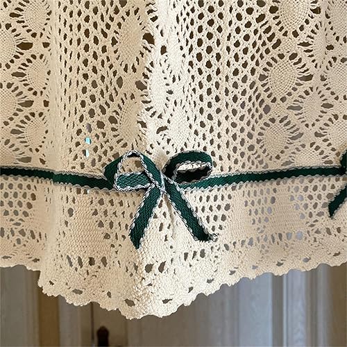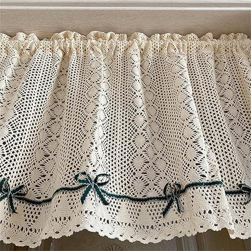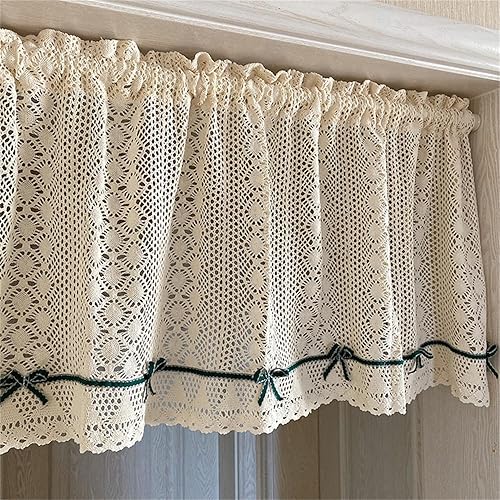 champracer Rideau brise-bise aspect crochet, court, style maison de campagne, motif floral rétro, pour bistrot, cuisine, porte avec pompon, 1 pièce, H 45 x l 130 cm