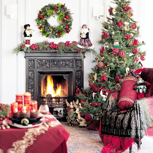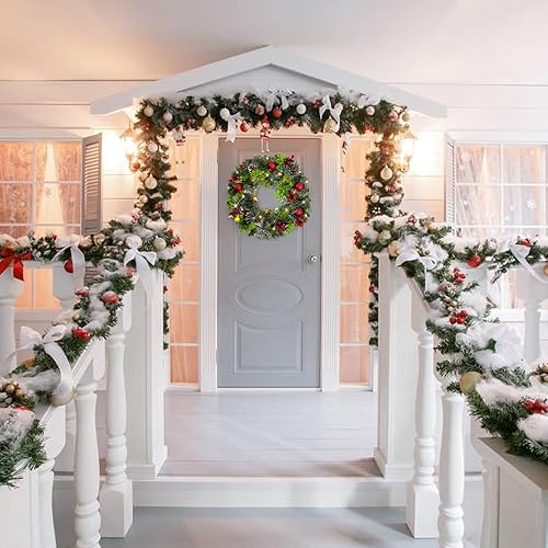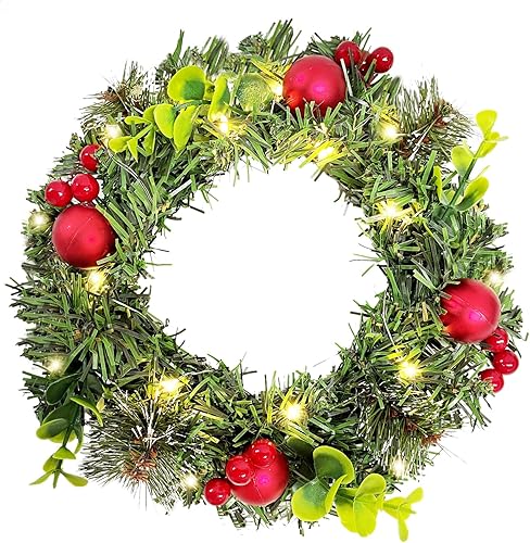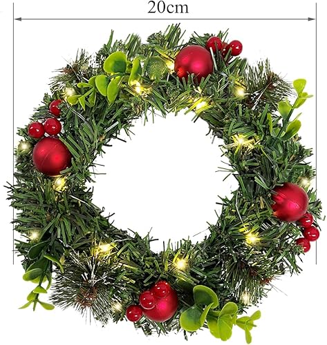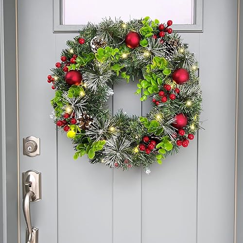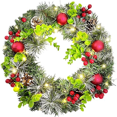 Couronnes et Guirlandes de Noël XXL, Couronne de Noel Porte Exterieur Lumineuse, Couronne Artificielle avec Boules de Noel & Pommes Pin, Decoration Noel Interieur Guirlande Epicéa LED Décorer (∅35cm)