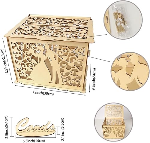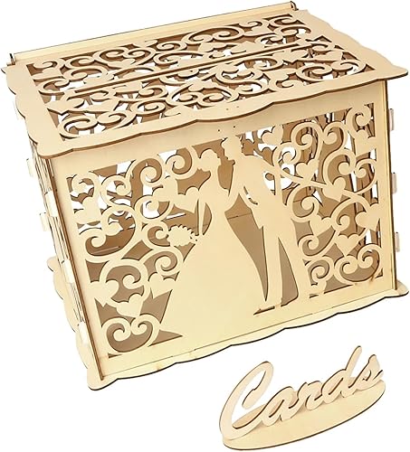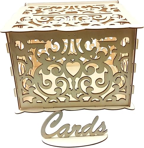 Urne Mariage Boîte à Cartes Creuse en Bois doré Scintillant, Fournitures de vœux for réception de Mariage, DIY (Color : TypeA)