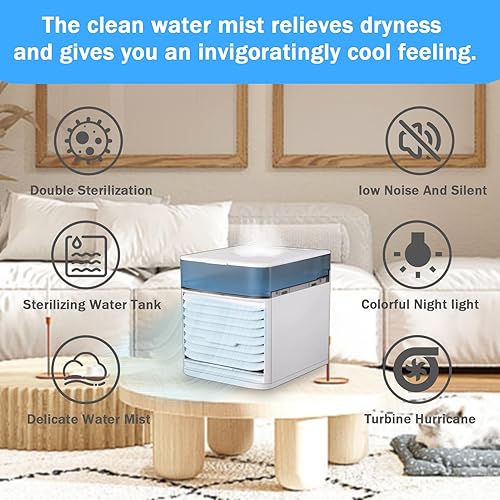 Yarvoney Climatiseur Mobile, Rafraîchit et Humidifie l'air de la Pièce, 4 en 1 Portable Climatiseur Mobile Silencieux, Mini Climatiseur pour la Maison et le Bureau
