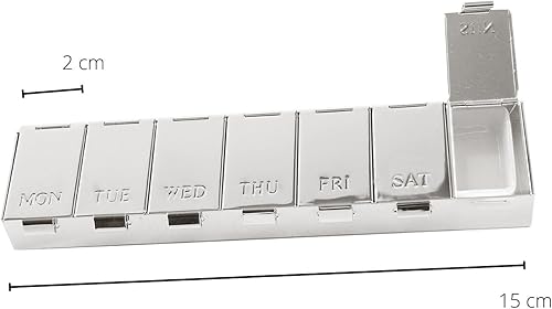EDZARD pilulier 7 jours, longueur 15 cm, argentée et résistante à la ternissure