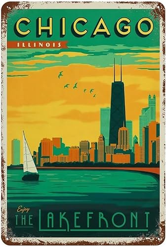YYHMKBYY Chicago : Lakefront,Décoration murale - Plaque en métal pour bar, pub, club, grotte(20x30cm 8x12 inch-578