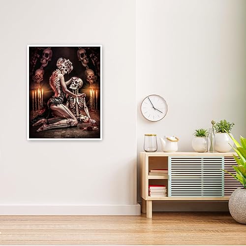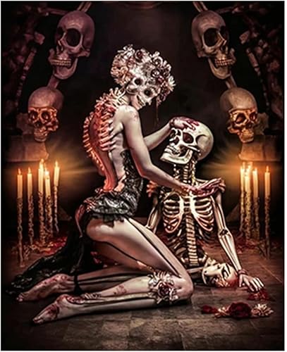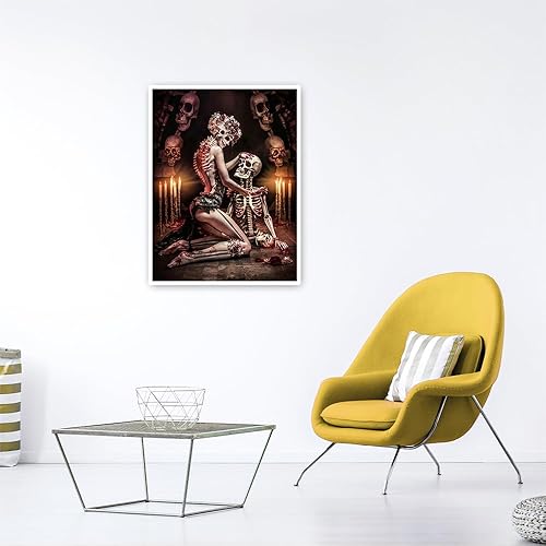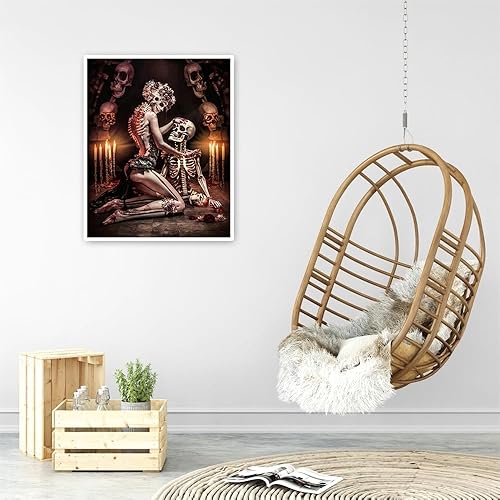 DCIDBEI 40x50CM Diamond Painting Couple Crâne, Rond Tableau Strass Diamant Tête de Mort pour Adultes, Canevas Diamant Femme Crâne, Diamond Art Craft pour la Décor Mural à la Maison