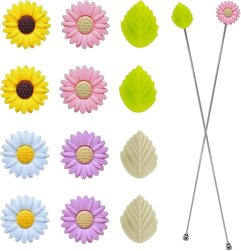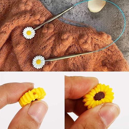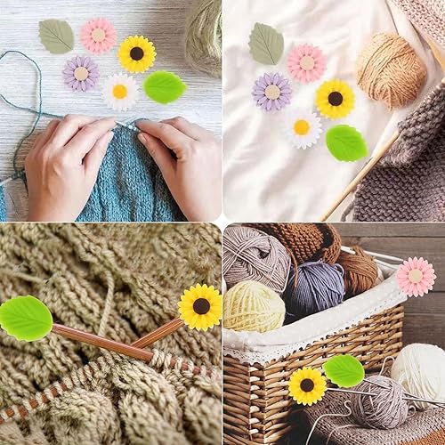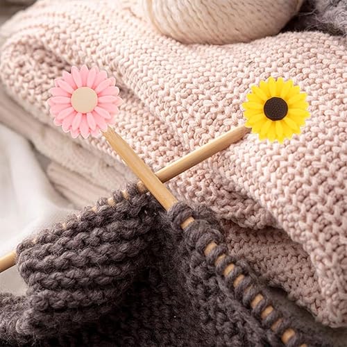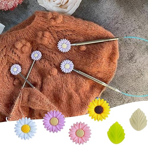 JINJUMEI 12 Pièces Bouchons d'Aiguilles à Tricoter Silicone, Bouchons D'Aiguille à Tricoter Marguerite Silicone Bouchons de Point Pointe d'Aiguilles à Tricoter pour Tricot Couture Quilting Crochet