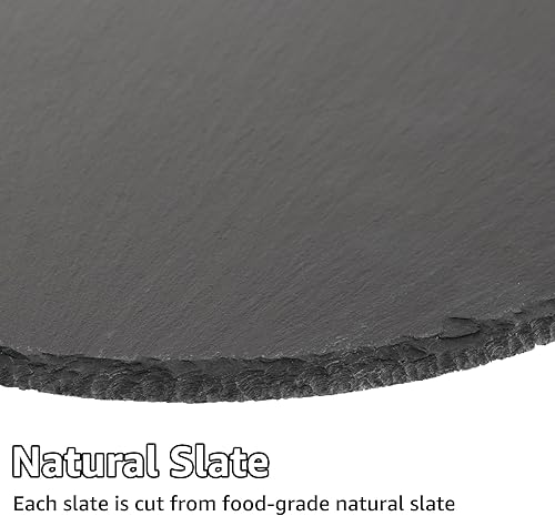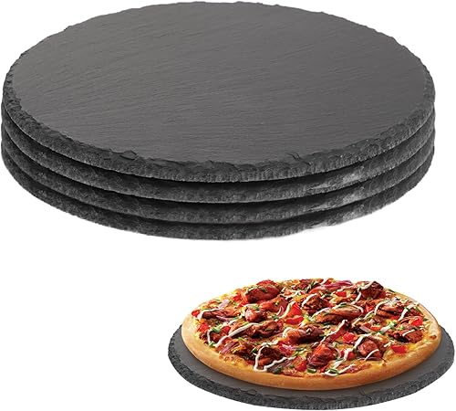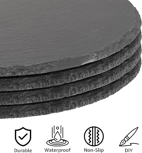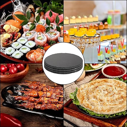 CYEER Lot de 4 assiettes rondes en ardoise de 25 cm - Plateau en ardoise - Plateau de service - Plateau en pierre naturelle pour bougies et décorations de table - Pour le bricolage