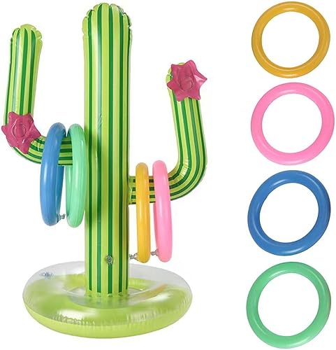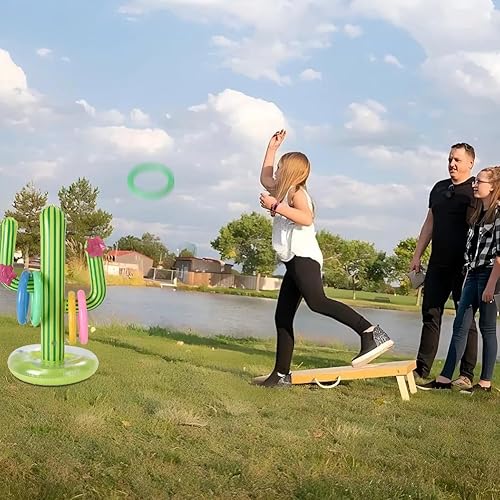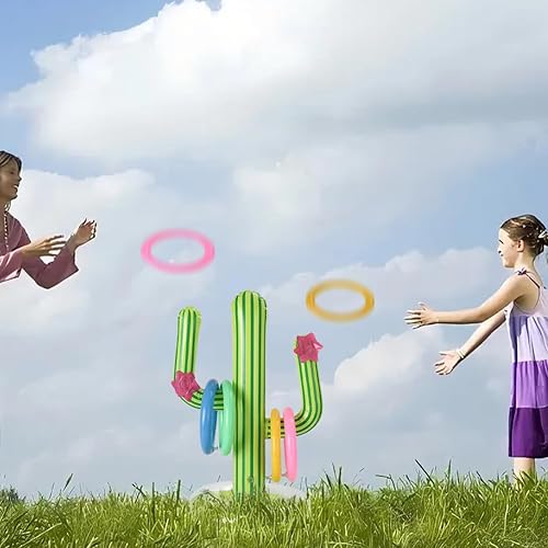Falafoty 7PCS Cactus Gonflable Jeu de Lancer D'anneau, Bouée Piscine Jouet Anneau Cactus, Anneaux gonflables Cactus Piscine Gonflable Jouets pour Jeu d'eau d'été, Fête sur Plage Hawaïenne Décor