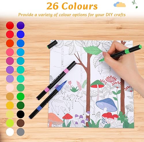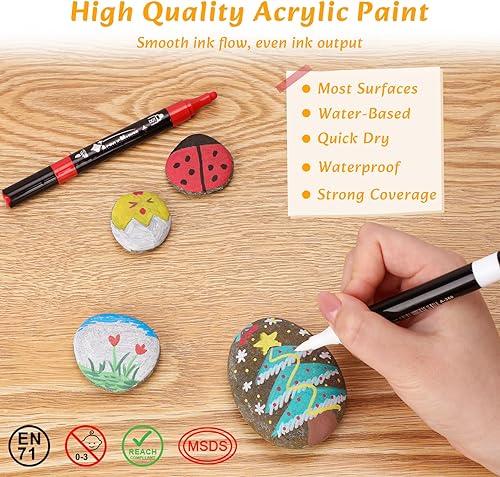 VynyQoo 26 Couleurs Marqueur Peinture Acrylique, Feutres Acrylique, Stylos de Peinture Acrylique à Double Pointe, Feutres Coloriage Adulte 0,5cm Extra Pointe Fine pour Roche Bois Tissu Verre Céramique