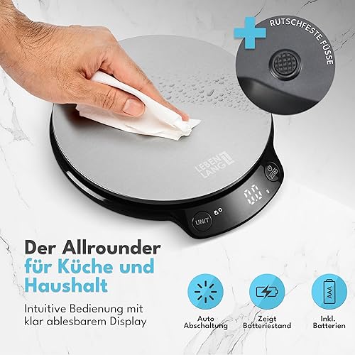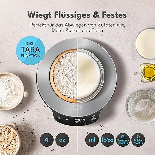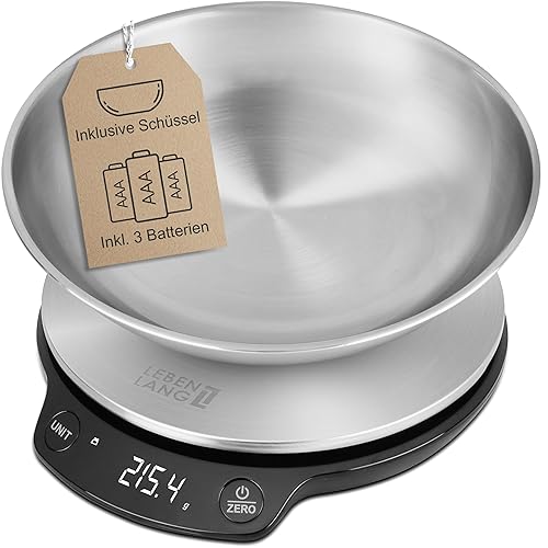 LEBENLANG Balance de cuisine numérique avec bol - Jusqu'à 5 kg - Idéale pour la cuisson - Balance de cuisine numérique - Balance de cuisine - Balance de cuisine - Balance de cuisine - Balance de